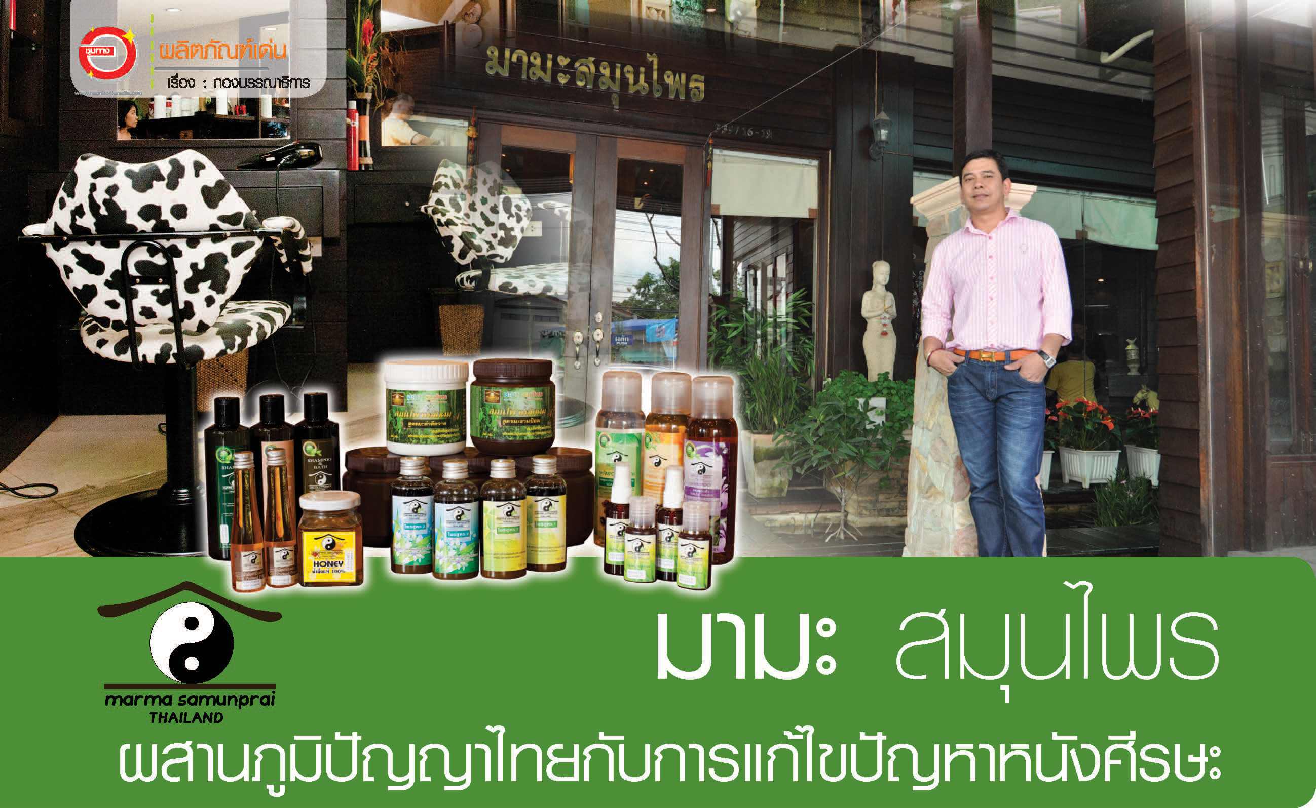 “หลังจากร้านที่ ม.สุโขทัยธรรมมาธิราชหมดสัญญาเช่าผมก็ย้ายมาที่บางบัวทอง โดยใช้เป็นสำนักงานใหญ่ครับ หน้าที่หลักของสำนักงานใหญ่คือ เป็นผู้อบรมและผู้ผลิตเพื่อส่งผลิตภัณฑ์ให้กับตัวแทนจำหน่ายตามสาขาต่างๆ เรามีโรงงานของเราเอง มีผู้เชี่ยวชาญคอยควบคุมการผลิต บุคลากรอาจจะไม่เยอะมากนัก แต่ทุกคนก็เปี่ยมไปด้วยคุณภาพครับ” |